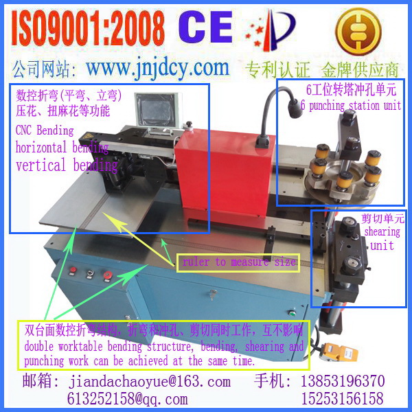 1,機(jī)器具有沖、剪、折三個(gè)加工單元,可分別進(jìn)行母線的沖孔、剪切、折彎加工,通過(guò)更換折彎單元的模具,還可以進(jìn)行壓平、壓花、壓電纜接頭、鈕花等特殊加工。