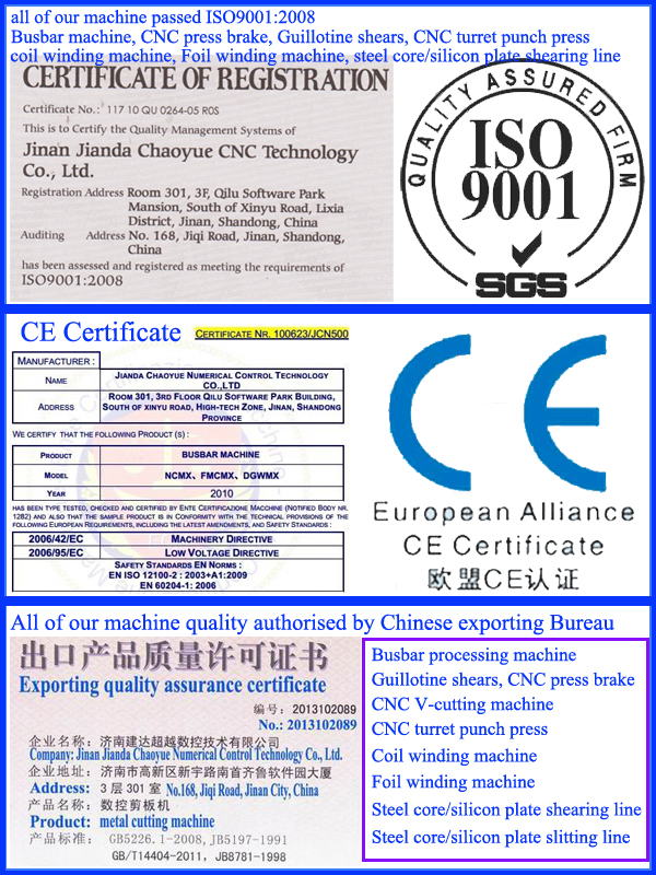 Our SKCSF31320 Servo driving CNC turret punch press has passed ISO9001:2008, CE certificate. And at the same time, it is passed test of Chinese exporting government and authorize us to exporting. We ensure machine quality, and our CNC turret punch press has exported many countries of the world, get high praise.