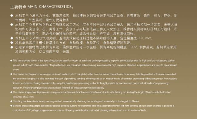 多功能母線加工機(jī)是我公司自行研發(fā)的新產(chǎn)品。與傳統(tǒng)母線加工相比,該產(chǎn)品其優(yōu)、特點(diǎn)如下: